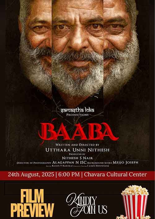 സംഘർഷങ്ങൾക്കും വെല്ലുവിളികൾക്കും ഇടയിലൂടെ മുന്നേറുന്ന പുതുമുഖങ്ങളുടെയും ജൂനിയർ നടന്മാരുടെയും സുരക്ഷിതത്വ പ്രശ്നങ്ങളെ ആസ്പദമാക്കിയാണ് ‘ബാബാ’ എന്ന ഹ്രസ്വചിത്രം പ്രേക്ഷകരിലേക്ക് എത്തിക്കുന്നത്.