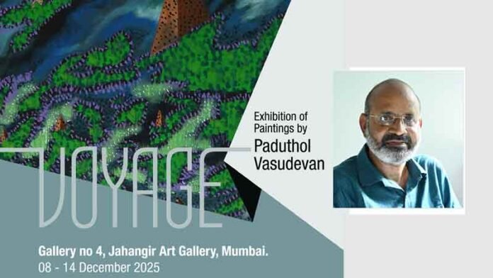 പ്രശസ്ത മലയാളി ചിത്രകാരൻ പടുതോൾ വാസുദേവന്റെ സോളോ എക്സിബിഷൻ ‘Voyage’ മുംബൈയിലെ ഐകോണിക് കേന്ദ്രമായ ജഹാംഗീർ ആർട്ട് ഗാലറിയിൽ ഡിസംബർ 8 മുതൽ 14 വരെ നടക്കും. ഡിസംബർ 8-ന് വൈകിട്ട് 4 മണിക്ക് ചിത്രപ്രദർശനത്തിന് തിരി തെളിയും.