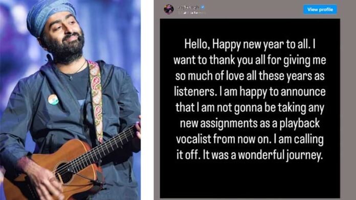 ഒരു ദശാബ്ദത്തിലേറെയായി ബോളിവുഡ് പ്രണയത്തിന്റെ ശബ്ദമായി മാറിയ അരിജിത് സിംഗ്, ഈ രംഗത്ത് നിന്ന് പിന്മാറുകയാണെന്ന് പ്രഖ്യാപിച്ചു. ഇൻസ്റ്റാഗ്രാമിൽ പങ്ക് വച്ച പ്രഖ്യാപനം ആരാധകരെ അമ്പരിപ്പിച്ചിരിക്കയാണ്.