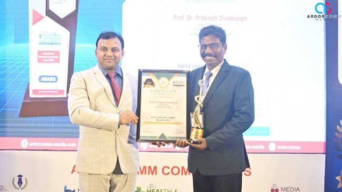 ഹിമാലയൻ യൂണിവേഴ്സിറ്റി വൈസ് ചാൻസലർ പ്രൊഫ. ഡോ. പ്രകാശ് ദിവാകരന് “Iconic Leadership in Higher Education – 2026” എന്ന ദേശീയ പുരസ്കാരം ലഭിച്ചു. ഗുവാഹത്തിയിൽ നടന്ന Education Leadership Summit & Awards 2026 വേദിയിലാണ് അദ്ദേഹത്തെ ആദരിച്ചത്.